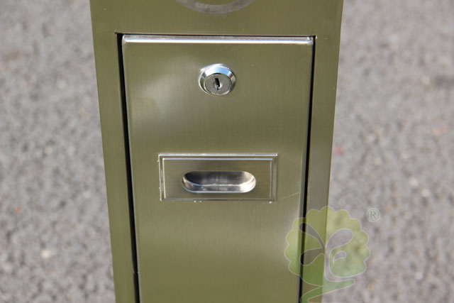 C618室外街道滅煙柱(zhù)規格248*248*1175mm,呈長條傳,側麵有三角鑰匙,可以打開(kāi)側門,方便清理(lǐ)位於內套管的煙蒂煙(yān)灰,底座分兩種,一種是室內采(cǎi)用的,在底部裝有防滑墊,一種是戶外(wài)采用(yòng)的,底部使用膨脹螺絲。