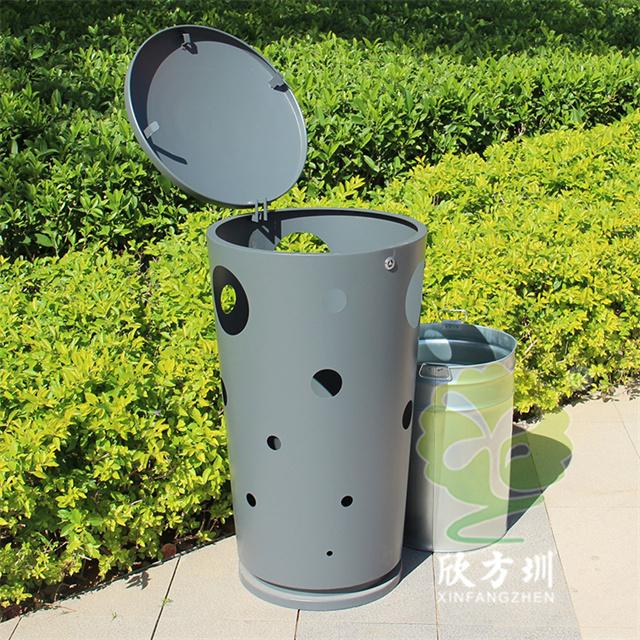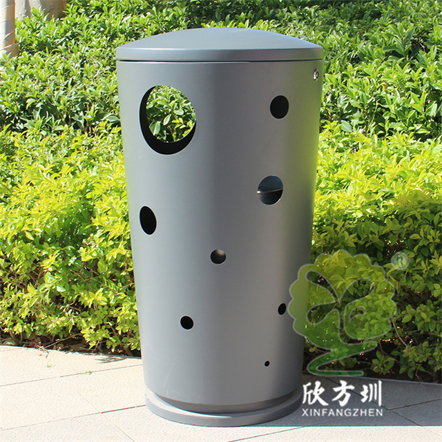 戶外鏤空圓柱形不鏽鋼垃圾桶是欣方圳設計(jì)生產的一(yī)款經典高檔垃圾桶,這款垃圾桶雖然使用(yòng)不鏽(xiù)鋼(gāng)製作而(ér)成,但是外形采(cǎi)用了灰色色噴塗噴(pēn)塑和做了防指紋處理,使(shǐ)其看起來有一股自然灰色高檔氣質,特別適合各種(zhǒng)戶(hù)外物業小區、公園景區、城中(zhōng)村、等場景使用。這款不鏽鋼垃圾桶外表經過防腐工藝處理,防(fáng)水防腐蝕、經久耐用、工藝精湛、物美價廉。如果你對(duì)這款垃圾桶感興趣,請直(zhí)接聯係我們(men)報價。