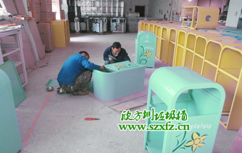 鋼板分(fèn)類垃圾桶噴塑工藝流程?