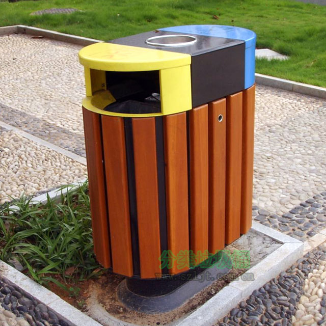 戶(hù)外鋼木(mù)雙分(fèn)類垃圾桶:使用高檔防腐(fǔ)木條和鋼板製作而(ér)成,堅固耐用,防水防鏽,氣質典雅,適用於公園、景(jǐng)區(qū)、學校等場所