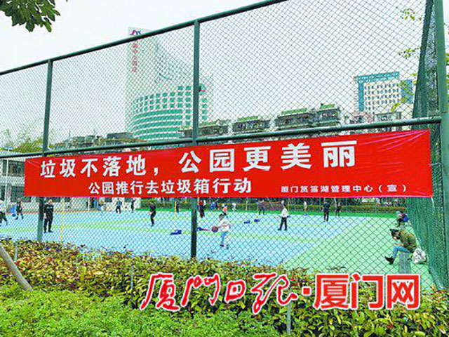 近日,廈門市南湖公園、鬆柏公園、江頭公(gōng)園將試行“公園去(qù)垃(lā)圾箱行動”——逐步減少(shǎo)公園垃圾箱的數量,以此鼓勵市民遊園時不產生垃圾或自行帶(dài)走垃圾,培養公眾的文明習慣。記者走訪了這些公園,了解“撤(chè)桶行動”的進展情況,並聽取市民建議。