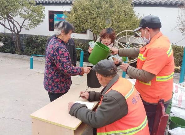 工作人員認真核對居民(mín)信息,按戶分發,保障全體居民入戶樱花草视频WWW(lèi)桶有序登記領取。