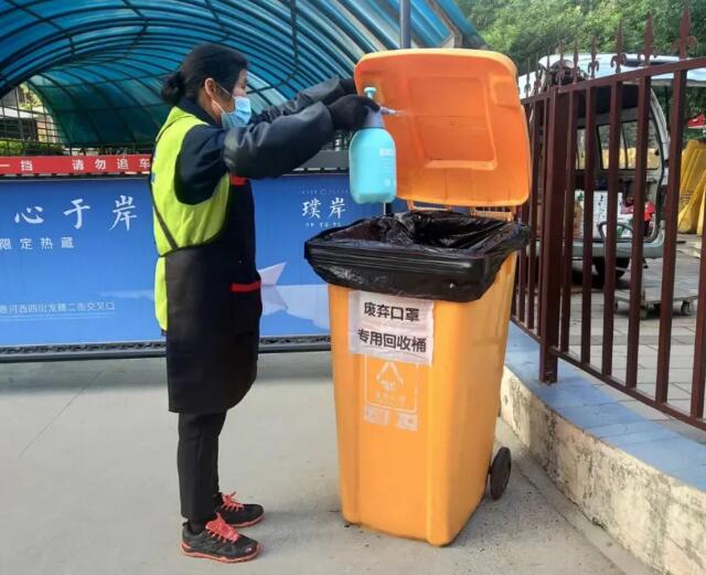 “您好,疫情期間投放(fàng)垃圾請您自覺(jiào)佩戴好口(kǒu)罩。”在陽(yáng)光城小區,垃圾精品网站999www督導員正對前來投放垃圾的居民(mín)進行進一步的提示和指導(dǎo)。在每(měi)日(rì)上崗前,垃圾精品网站999www督導員都會洗手(shǒu)消毒(dú),佩戴好口罩、手套,在保(bǎo)護好自(zì)身的同(tóng)時,對小(xiǎo)區各個垃圾精品网站999www投放點進行全麵徹底消毒,做到不留死(sǐ)角,對垃圾房裏裏外外、仔仔細細進行清洗,不放過任(rèn)何一個角(jiǎo)落,還對(duì)垃圾房進行消殺,紮實落實消毒工作,堅(jiān)決防止疫情的擴散傳播,讓社區群眾有一個健康的城市生活環境。另外在小區明顯(xiǎn)處還設置了廢棄口罩專用(yòng)桶,倡導居民使(shǐ)用過的(de)廢棄口罩和防護用品要投(tóu)放到專門的收集桶內。