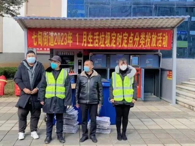 隨著群眾參與熱情不斷高漲,七甸街道主(zhǔ)動創新(xīn)探索,試點推出生活垃圾定時定點投放模式,在方便群眾投放的同時也便於垃圾及時清運。
