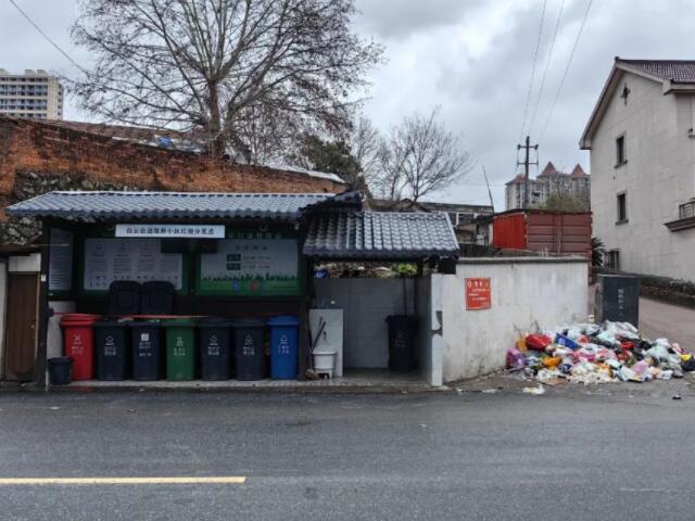 白雲街道接官亭社區隴新小區黨支部書記杜德(dé)偉(wěi)介紹,該垃圾精品网站999www崗亭建於2021年,由第三方運營(yíng)機構承包管理,此後(hòu)一年左右衛生情況較好,去年10月(yuè)左右開始出現崗亭外隨意堆放垃圾的現象。“垃圾精品网站999www亭北側(cè)是一個老廠區,裏麵有多家企業(yè),人員多了,產生(shēng)的(de)垃圾也(yě)多了,崗亭的垃圾容量不太能滿足需求,而清運方清理不及(jí)時,導致垃圾越堆越多。”杜德偉說,崗亭(tíng)巡檢員、督導員、執(zhí)法員等工作人(rén)員(yuán)會在(zài)居民精品网站999www投(tóu)放生活垃圾時進行監督提醒,而對於崗亭外的垃圾亂(luàn)堆放有些力不從心(xīn),立著的警示牌也沒(méi)什麽(me)效果(guǒ)。