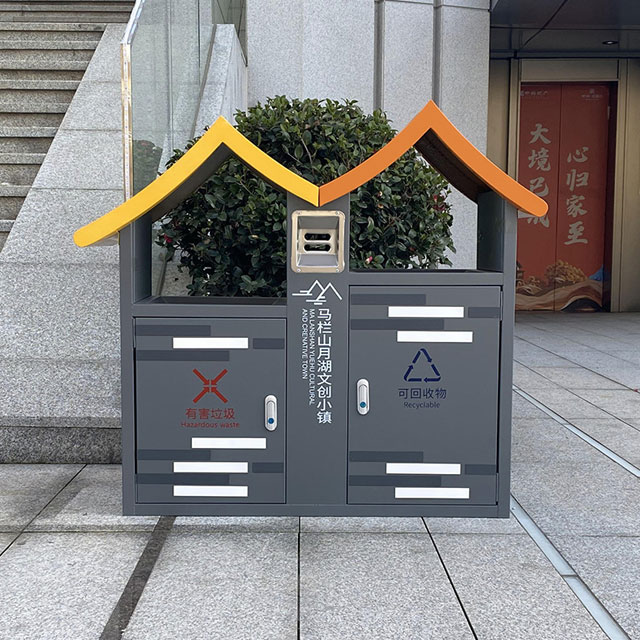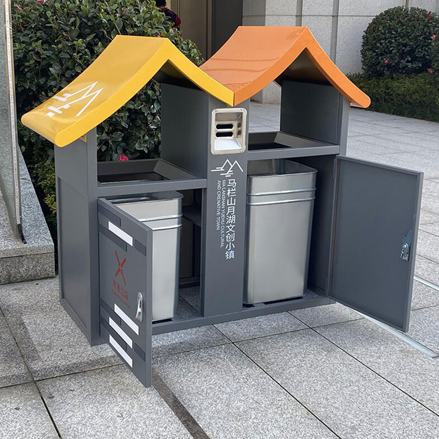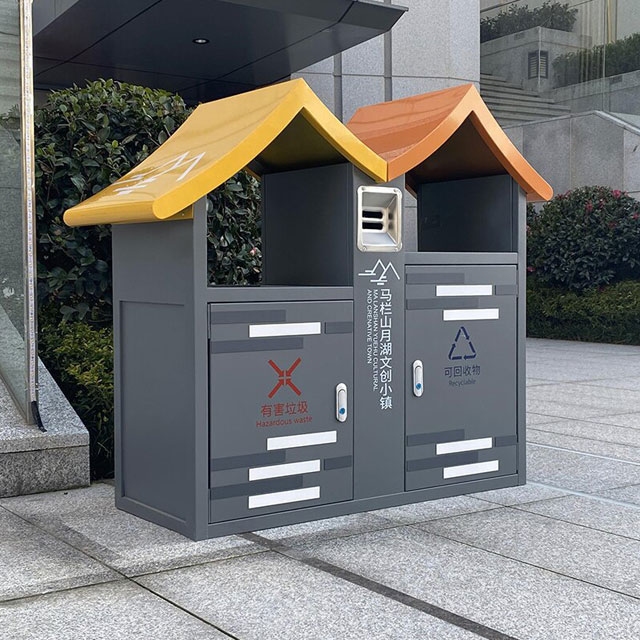 戶外新(xīn)寵屋形鍍鋅板分(fèn)類垃圾(jī)桶
