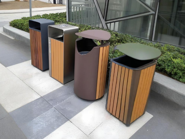 通過調整木材顏色(原木色、炭(tàn)黑色、仿古漆等(děng))、鋼材造型(線條弧度、鏤(lòu)空圖案)及品牌標識植入,垃圾(jī)桶(tǒng)可無縫融入不同場景。如古建街區采(cǎi)用仿古銅色鋼架與深褐木紋(wén),科技園區則用幾何切割造型搭配(pèi)淺色木飾麵。