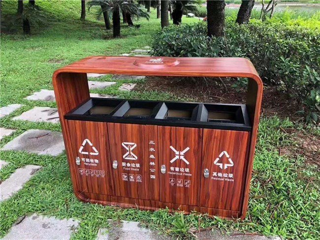 傳統不鏽鋼(gāng)垃圾(jī)箱冰冷的金屬質感常與戶外環境格格不入,而轉木紋技術的應用徹底打破了(le)這一局限。通過先進的熱轉印工藝,不鏽鋼表(biǎo)麵呈現出天然(rán)木材的細膩紋理與溫暖觸感,既保留了木材的自然韻味,又克服了其易腐、易損的缺陷。無論是公園的林蔭小徑、商業街的休閑廣場,還是社區(qū)的綠化帶,木紋垃圾箱都能與環(huán)境巧妙呼應,為城市空間注入一抹優雅與和諧。