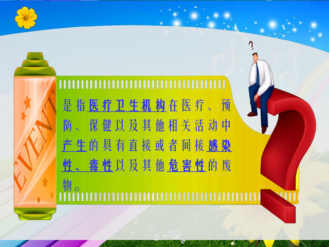 醫療垃圾是指醫療衛生機構在醫療(liáo)、預防、保健以(yǐ)及其他相關活動中產生的具有直(zhí)接或者間接感染性、毒性或者(zhě)其他(tā)危害性的廢物。醫療(liáo)垃圾對人體的損害非常大,所以醫療垃圾精品网站999www,特殊處理一定要嚴格貫徹落實。那麽醫療垃圾怎麽(me)精品网站999www呢(ne),分(fèn)類垃圾桶網為大家收集了醫療垃圾精品网站999wwwppt,希望能對大家有所幫助。