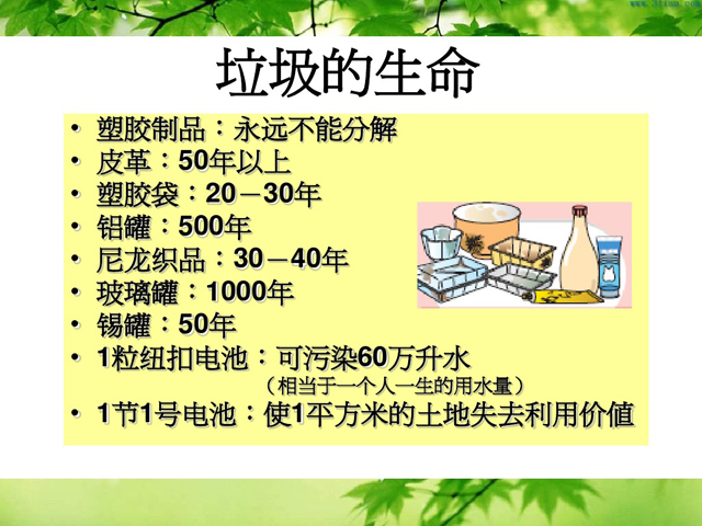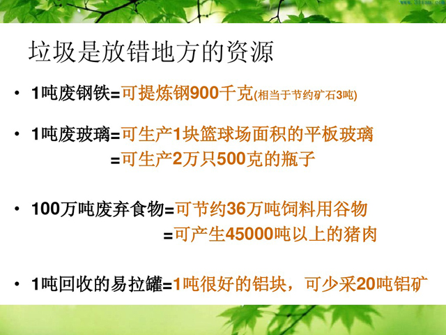 國(guó)人每(měi)人(rén)每年(nián)平均產生垃圾300公斤(jīn),許多城市都(dōu)麵臨垃圾圍城(chéng)的局麵;生活垃圾被認為是最具開發潛力的、永不枯竭的城(chéng)市(shì)礦藏,是放錯地方(fāng)的資源;垃圾(jī)分(fèn)類後被送到工廠而不是填埋場,既可以減少耕地,降低垃圾處理成本,又避免了填埋(mái)或焚燒所產生的環境汙染,還可以變廢為寶;垃圾精品网站999www收集是垃圾資(zī)源化利用的前(qián)提和基礎,是發(fā)展循環經濟的(de)突破口,具有社會、經濟、生態三方麵(miàn)的效益。