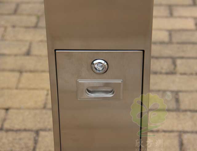 C-279C金(jīn)屬煙灰柱規格250*250*1185mm,呈長條傳,側麵有三角鑰匙(shí),可以(yǐ)打開側門,方便清理位於內(nèi)套管的煙蒂煙灰,底座分兩(liǎng)種,一種是室內采用的,在底部裝有防滑墊,一種是戶外采用的,底(dǐ)部使用膨脹螺絲固定。