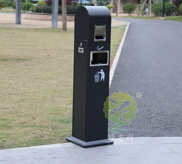 C629烤漆吸烟柱规格320*320*1200mm,呈方形,侧面有三角钥(yào)匙,可以打开侧门,方便清理位于内(nèi)套管的烟蒂烟灰,底座分两种,一种是室内采用的,在底部装有防滑垫,一种是户外采(cǎi)用的,底部使用膨胀螺丝固定。外形兼具美(měi)观性和功能性(xìng),实现烟蒂垃圾双投放(fàng)功能(néng),上部分收集烟灰烟蒂,下部分收集果皮垃圾。隔缘分离,杜绝火灾。