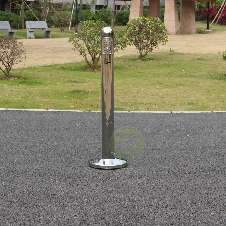 廠家定製柱式不鏽鋼滅煙(yān)柱采用優質不鏽鋼剪切、組(zǔ)裝、焊接(jiē)、絲印而成,它包括外(wài)套(tào)管、支座、內套管、煙灰盒、底座。外(wài)套管的底端固(gù)定連接在支座上,外套(tào)管的側壁上設有煙(yān)蒂置入口(kǒu),內套管用於集中收納從外套管的(de)煙蒂置入口投入的(de)煙蒂,內套管(guǎn)設在外套管的(de)內管腔(qiāng)中(zhōng),內內套管的開口(kǒu)端朝上(shàng),煙(yān)蒂置入口與內套管的開口相連通,以使得從煙(yān)蒂置入口投入的煙蒂可從內套管的開口端落入到內套管的內(nèi)管腔中;