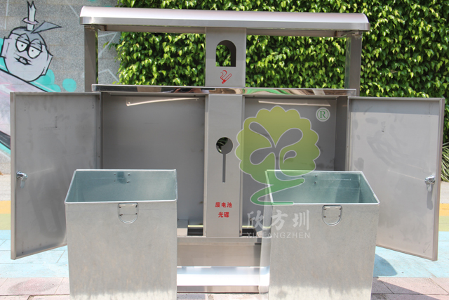 桶身有向兩側打開的門,內部放置(zhì)鍍鋅板內(nèi)桶,內桶光滑摩擦(cā)小,不利於垃圾殘留,方便環衛工人清倒垃(lā)圾。與其他的隻有一層的(de)垃圾桶比較,帶內桶的雙層垃(lā)圾桶更幹淨,因(yīn)為這種垃圾(jī)桶非常方(fāng)便清潔清洗,隻需要將幹淨內桶與髒的更換就行。能夠清洗的垃圾桶不會有垃圾殘留,不會滋生細菌病毒,不會產生腐爛臭味,不(bú)會吸引蚊蟲鼠蟻,對於城市衛生(shēng)的(de)清潔、城市麵貌的提升效果非常大。
