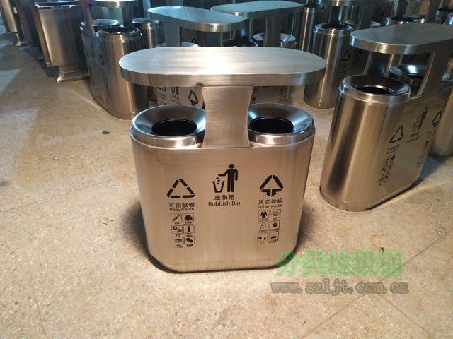 【產品顏(yán)色(sè)】:以不鏽鋼(gāng)材質本色為底色,絲印的圖案用黑(hēi)河表示,分別代表可回收物也其(qí)他垃圾兩大類;顏色對比鮮明和諧,簡潔大方,實用(yòng)美觀,還可根據客戶需求定製。