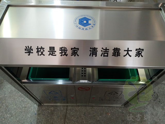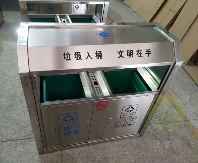 這款垃圾桶采用內外桶雙層模式,內桶使用玻璃鋼內桶,優點是質量輕,堅固(gù)耐用,防水防秀,相對於(yú)鐵皮內桶來說(shuō),使(shǐ)用時間更長,性價比更高。外殼使用優質304不鏽鋼作為原材料,擁(yōng)有良好的防腐防鏽功(gōng)能(néng),使用先進的激光切割機、折(shé)彎機經過(guò)一係列專業(yè)精準的切(qiē)割、折彎、組裝、焊接、打磨、絲印步驟(zhòu)處理而成。