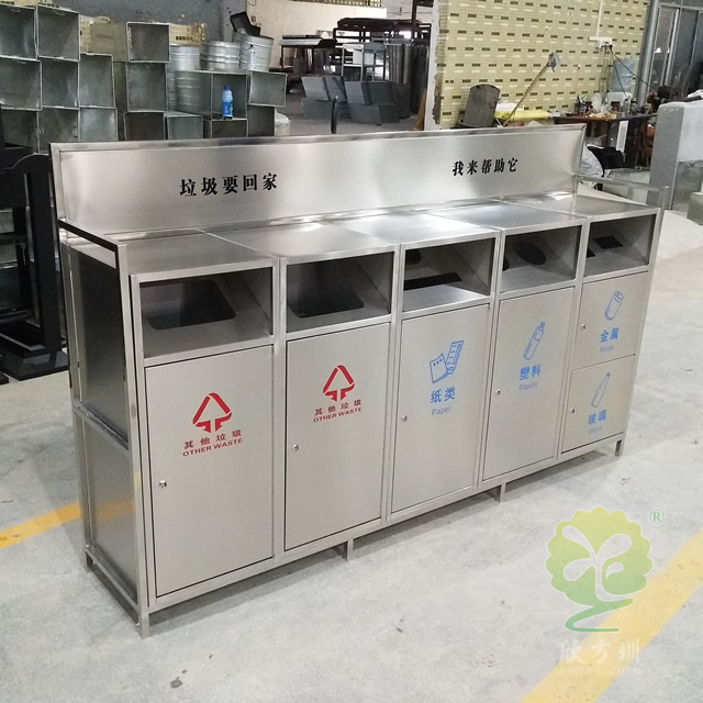 大号户外五(wǔ)分类不锈钢垃圾回收箱生产过程: