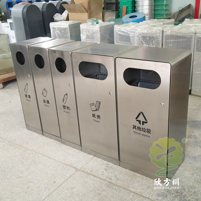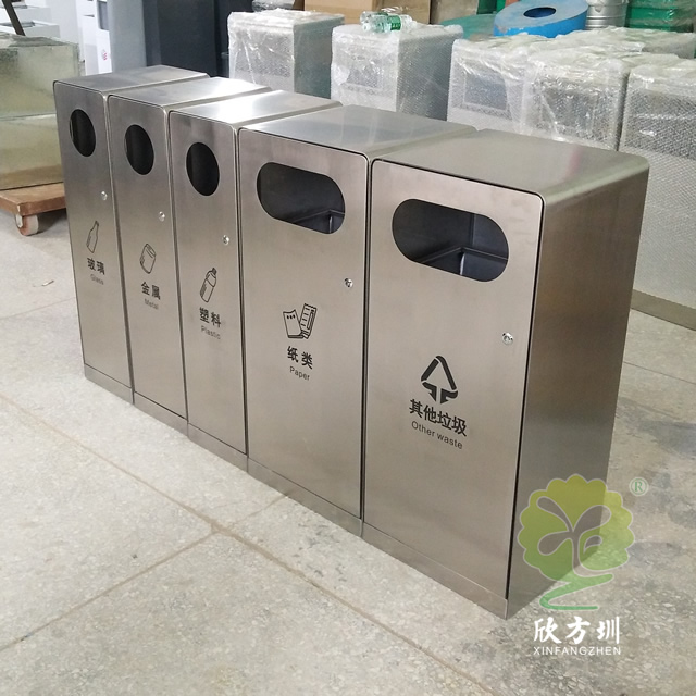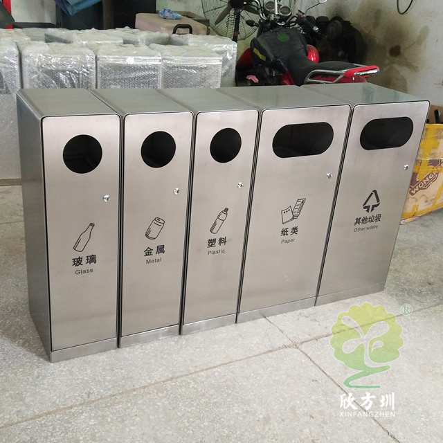 卓越品质、精湛工艺‘、时尚外(wài)观是XFZ-F343四加一组合式(shì)不锈钢分类垃圾桶的优点,它(tā)以优质201#不锈钢剪裁、组装、焊接而成,却浑然(rán)天成、严丝合缝、看不到一点缝隙和焊接痕迹。完(wán)美的折弯曲线非常(cháng)考验制作工人的(de)手艺,这种曲(qǔ)线不仅仅(jǐn)代表了美的(de)艺术,更是实(shí)际使用过(guò)程中积累的智慧与经(jīng)验结晶。它(tā)能很好的防(fáng)止人(rén)群磕伤碰伤,保护附近人流的安全。加厚(hòu)的桶身让垃圾桶更加的坚(jiān)固(gù)耐用,看起来更高档更有质感,这种高(gāo)档优质的外形让它非常适合摆放于办公楼(lóu)、酒店大堂、商场等奢华场所。桶底配有防滑垫,无需使(shǐ)用螺丝就能起着很好的固定作用,还能防止地(dì)面刮花,专门为室内场所设计。