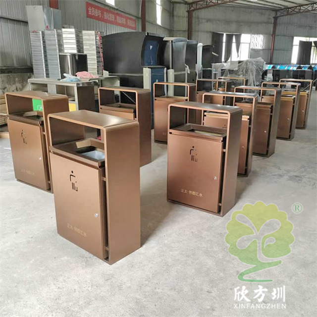 室內新(xīn)樓盤電梯(tī)口方形不鏽鋼果皮箱采用(yòng)201不鏽鋼板製作而成,室內單桶方形設計,果皮箱表麵電鍍噴塑上色,正反麵人頭標可以采用鏤空或(huò)者腐刻絲(sī)印,桶身正反麵下方絲網(wǎng)印刷企業logo,三角鑰匙開門可(kě)以取出內置內筒,頂部無煙灰盅需要煙灰盅可以定製。