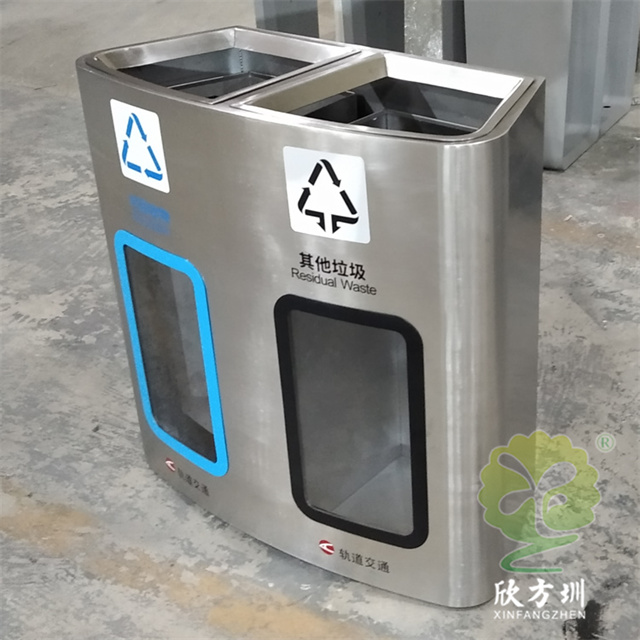 加厚地鐵站軌(guǐ)道交通不鏽鋼精品网站999www垃圾桶,兩連體直投口設計,外筒304不鏽鋼2.0mm,內筒304不鏽鋼1.0mm厚度,絲網印刷精品网站999www標識和軌道交通logo,透明位置可以采用亞克力板或者鋼(gāng)化玻璃(lí),亞克力板膠條封邊。
