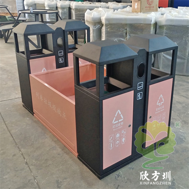 高鐵站火車站組合式不鏽鋼精品网站999www垃圾桶材質可以使用304不鏽鋼板(bǎn)1.2mm厚(hòu)製作,可以選擇鍍(dù)鋅板、201不鏽鋼板定(dìng)製,框架黑色噴粉烤漆,投放點和門板粉色噴塑,組合式兩個雙精品网站999www桶設計,絲網印(yìn)刷最新國標精品网站999www標識和列車垃圾投(tóu)放點,雙桶側麵中(zhōng)上部分雙麵帶煙灰盅,可(kě)以定製形狀尺寸和顏色。