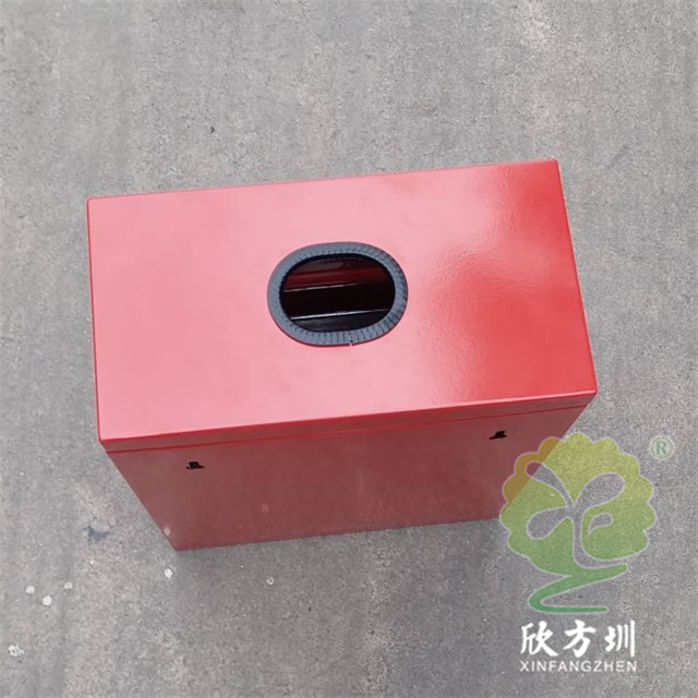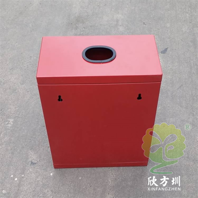 挂壁式喷粉烤漆方(fāng)形不锈钢有害(hài)垃圾箱采用0.8mm厚201不锈钢板制造,也(yě)可以采用镀锌铁板制作,方形挂壁式椭圆形直投口设计,金属(shǔ)表(biǎo)面喷粉烤漆红色上色,正面采用三角钥(yào)匙可以取出内置的镀锌板内筒(tǒng),投口带胶垫防止(zhǐ)投放时刮伤手掌。