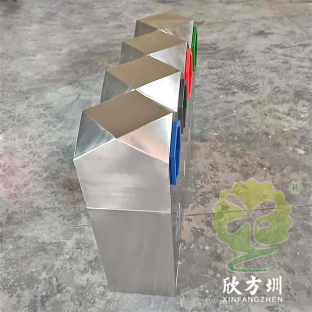 戶外公園組合式(shì)菱形不鏽鋼(gāng)分(fèn)類垃圾(jī)桶可以采用201或者304不鏽鋼板製作,單筒組合式(shì)頂部菱(líng)形設計,六邊形投口不鏽鋼烤漆四(sì)色(sè)噴塑,無煙灰盅門板磁吸方便取出內筒,此款(kuǎn)果皮箱可以定製鍍鋅板烤漆(qī),門板可絲網印刷中英文國(guó)標(biāo)精品网站999www標識,支持做腐刻、電鍍、拉絲、防指紋處理等工藝。