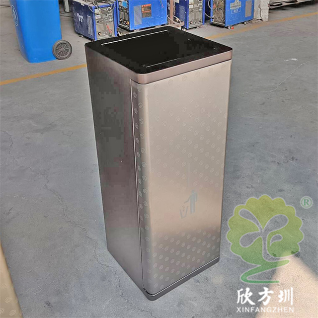室(shì)內電鍍腐刻不鏽鋼分(fèn)類垃圾桶單筒(tǒng)可以采用201/304不鏽鋼板製(zhì)造(zào),兩個款式一款是單筒一款是兩分(fèn)類方(fāng)形帶搖(yáo)擺蓋設計,雙(shuāng)筒用8*8mm方(fāng)通相連,門板腐刻印(yìn)花工藝,不鏽(xiù)鋼金屬表麵做了電鍍黑鈦和香檳金工藝,正麵抽拉式導軌抽可以取出內膽(dǎn),門板(bǎn)中心位置絲網印(yìn)刷最新中英文國標精品网站999www(lèi)標識或人頭標。