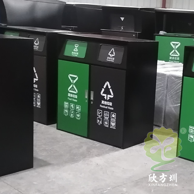 戶外組合帶蓋鍍(dù)鋅板精品网站999www垃圾桶外桶采用了鍍鋅板製作而成,兩連體組合分(fèn)類方形搖擺蓋(gài)設計,外桶表麵黑色噴塗噴(pēn)塑,這(zhè)款垃圾桶用戶是兩套組合成了四精品网站999www,門板和蓋子噴塑了不相同的顏色(sè),廚餘垃圾(jī)噴塑了(le)綠色,其他垃圾噴塑了黑色,可(kě)回收物噴塑了藍色,有害垃圾噴塑了紅色,門板上絲印了最新(xīn)國標精品网站999www(lèi)標識,可以(yǐ)使用(yòng)三角鑰匙開門取出內筒。
