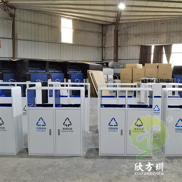 戶外(wài)方形烤漆白色鍍鋅板精品网站999www垃圾桶采用(yòng)了1.00mm厚的鍍(dù)鋅板製作而成,雙麵投口方形兩連體精品网站999www設計簡潔大氣(qì),兩麵絲(sī)網印刷了其他垃圾和其他垃圾的最新國標精品网站999www標識,開門方式采用了磁吸方式推拉無需三角鑰匙, 我們廠家支持冷(lěng)軋鋼板、不鏽鋼、表麵電(diàn)鍍、烤漆、噴(pēn)塑上色定製(zhì),每個城市都有每一個城市垃圾桶設(shè)計(jì)方案。