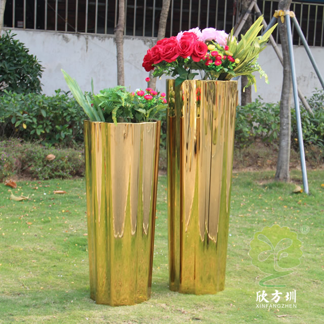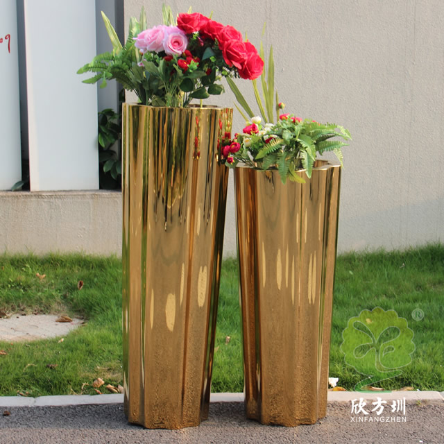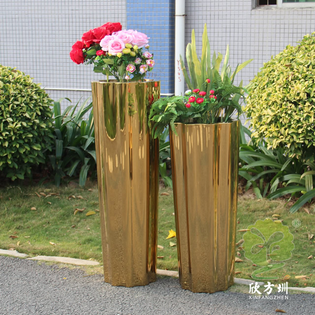二、室內高瓶鏡麵鈦金不鏽鋼花盆組合的擺(bǎi)放位置