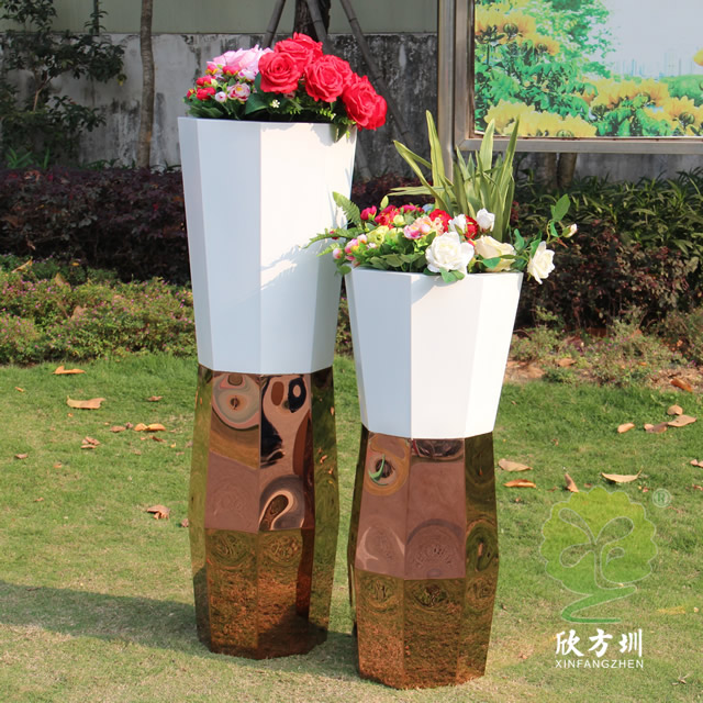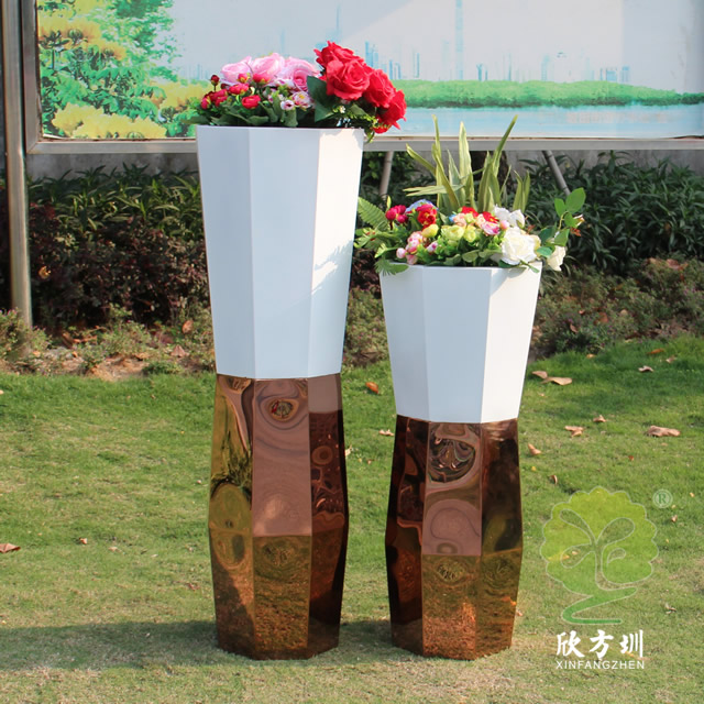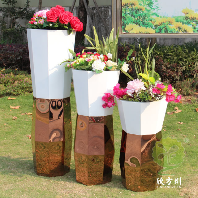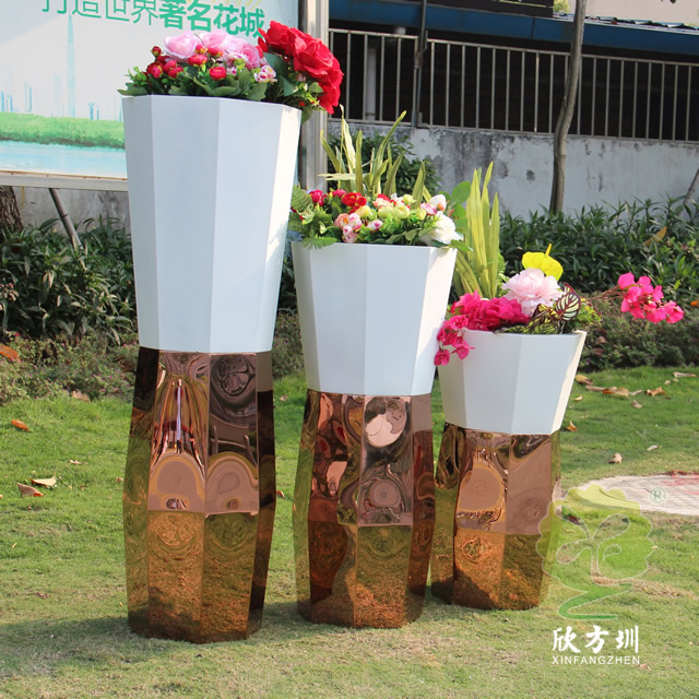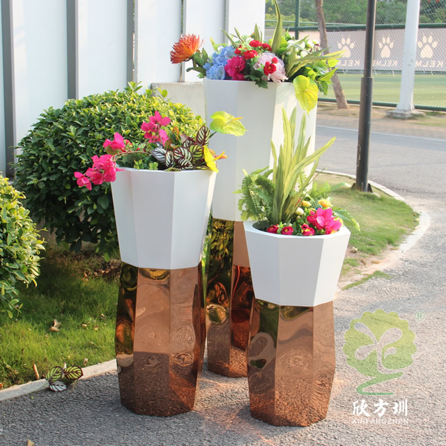 二(èr)、菱形噴塑白色玫瑰金不鏽鋼(gāng)花(huā)盆組合的(de)擺放位置