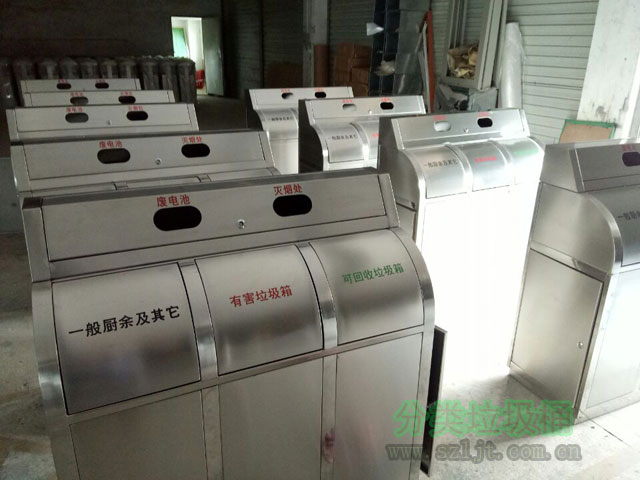 不锈钢三分类垃圾桶工艺精湛,品质高档,深受客户好评。它采用优质不锈钢(gāng)板作为原材料,制(zhì)作出来的垃(lā)圾桶坚固耐用,光滑(huá)不生锈。整个垃圾桶(tǒng)制作非常注重人性(xìng)化的小细节,表角都作了折弯处理,没有利角不割手,防止意外割伤(shāng)。