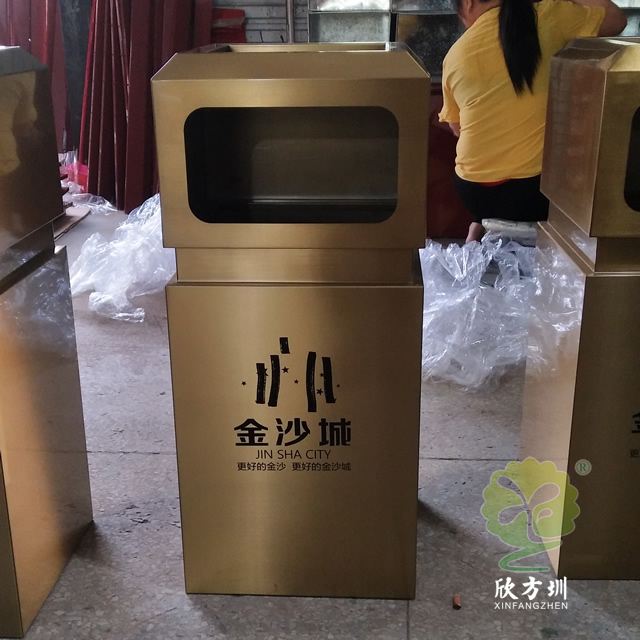 戶(hù)外電鍍古(gǔ)銅色方形不鏽鋼垃圾桶是欣(xīn)方圳設計生產的一款經典熱銷垃圾桶,這款垃圾桶雖然使用(yòng)不鏽鋼板製作而成,但(dàn)是(shì)外形采用了電鍍古銅色設計,使其看起來(lái)有一股自然古典氣質,特別適合各種曆史景(jǐng)區、戶外公園、別墅小區、學校廣(guǎng)場等場(chǎng)景使用。這款垃圾桶外表經過防腐工藝處理,防水防腐蝕、經久耐用、工藝精湛、物美價廉。如果(guǒ)你對這(zhè)款(kuǎn)垃圾(jī)桶感興趣,請直接聯係我們(men)報價。