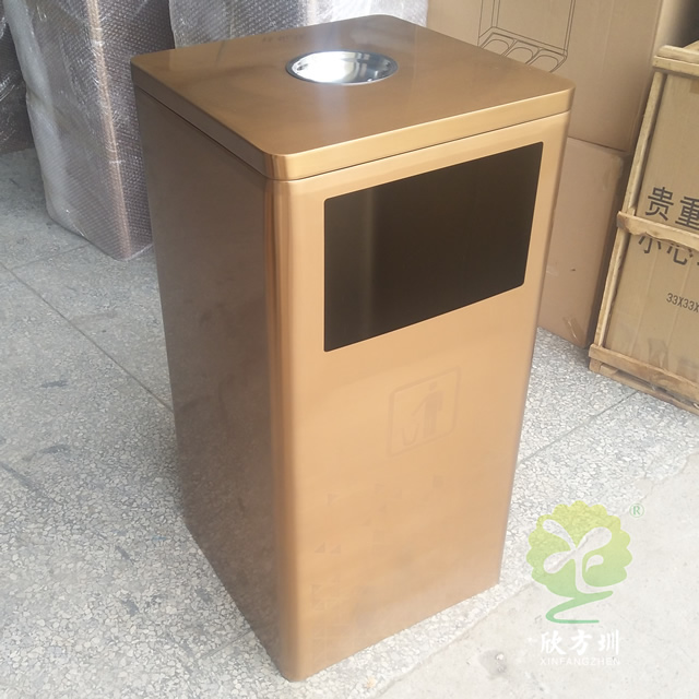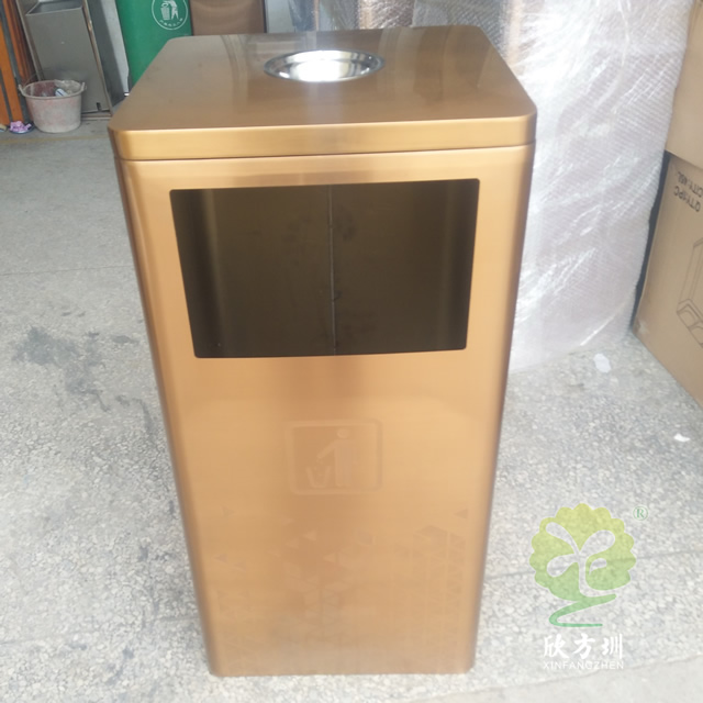 腐刻電鍍土豪金不鏽鋼果皮箱是欣方圳設計(jì)生產的一款經典熱銷垃(lā)圾桶,這款垃圾桶雖然使用不(bú)鏽鋼板製作而成,但是外形采用了(le)電(diàn)鍍土豪金設計,使其看起來有一股自然古典氣質,特別適合各種曆史景區、戶外公園、別墅小區、學校廣場等場景使用(yòng)。這款垃圾(jī)桶外表經過防腐工藝(yì)處理,防水防腐蝕、經(jīng)久耐用、工藝精湛、物美價廉。如果(guǒ)你對這款垃圾桶感興趣,請直接聯係我們報價。