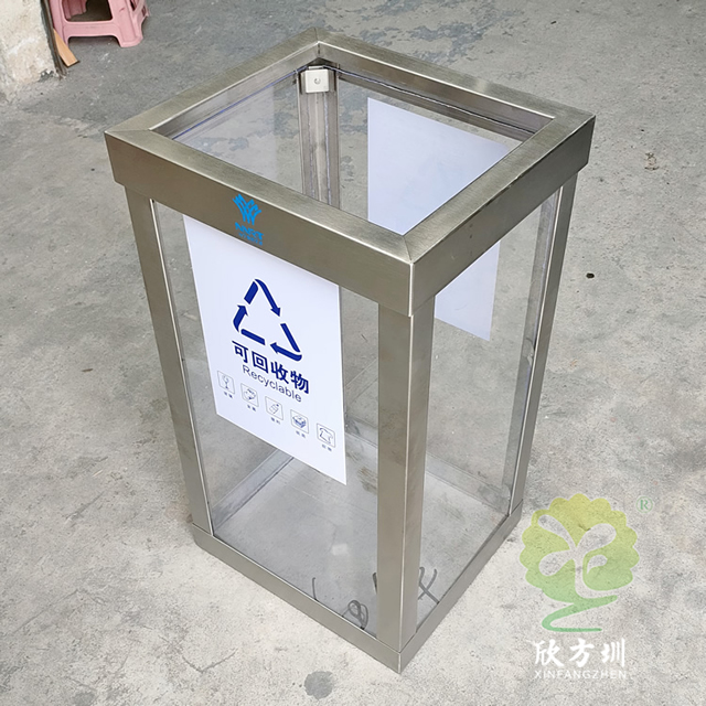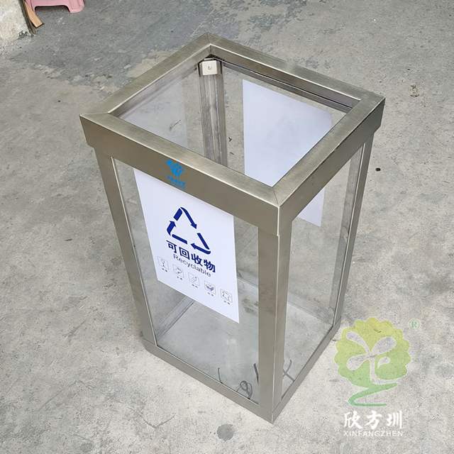 地(dì)鐵站透明防(fáng)爆不鏽鋼樱花草视频WWW垃圾桶框架可以采用201或者304不鏽鋼板製作,方形(xíng)設計可透視(shì)看見裏麵的廢物,透明(míng)板材采用了(le)亞克力板,這款垃圾桶不是真的防爆而是可以看到裏麵有沒有危險物(wù)品,一般都是套(tào)透明的塑(sù)料袋使用,正反麵貼了一個可回收物的(de)樱花草视频WWW標識,裏麵帶螺(luó)絲帽擰開(kāi)方(fāng)便更換亞克力板,我們欣方圳製作過很多這種透明防爆(bào)桶基本上都(dōu)是用於人群密集的地方,可以根據客戶要求定製。