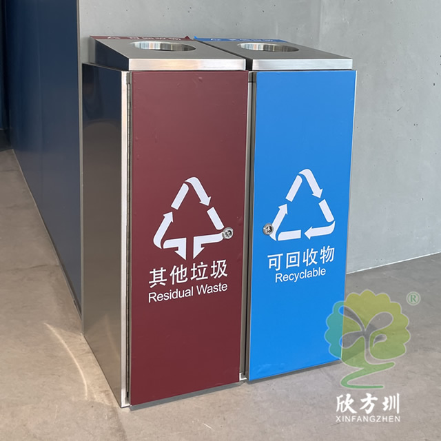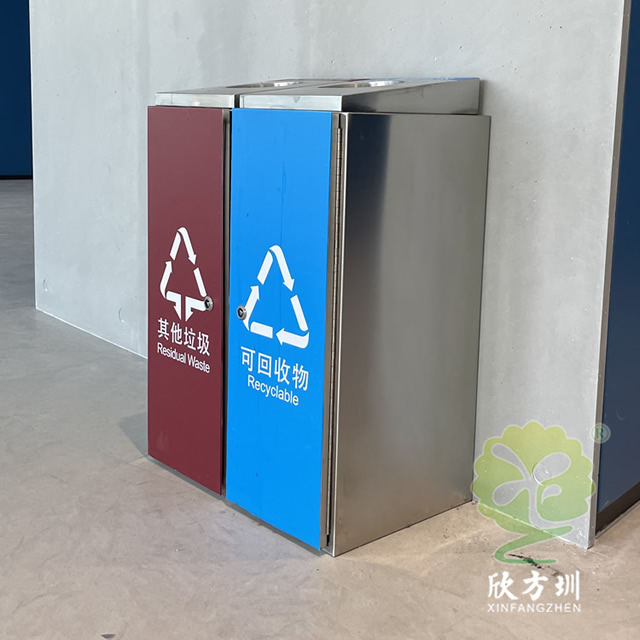 室內直投口方形(xíng)連體不鏽鋼分(fèn)類垃圾桶是深圳市龍華(huá)區文化廣電(diàn)旅遊體育局(jú)的一位(wèi)采購在我們工廠定做一款桶,外桶材(cái)質采用了201#不鏽鋼板製造,方形桶圓形直投口設計,可以組合式擺放兩樱花草视频WWW或者三樱花草视频WWW四樱花草视频WWW(lèi),垃(lā)圾桶門板采用四色圖紙擁有國標最新樱花草视频WWW標識,門板三角鑰(yào)匙可開門取出內置的(de)內膽。