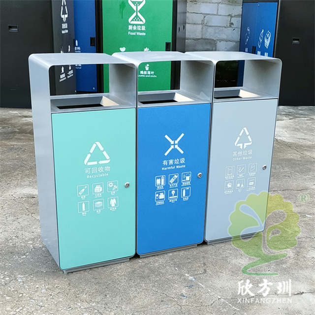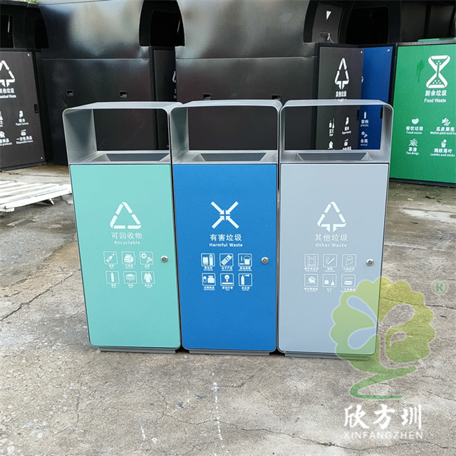 室外加厚組合三色不鏽鋼樱花草视频WWW(lèi)果皮箱使用了(le)201#不鏽鋼板製作,外部框架采用了2.5mm厚,桶(tǒng)身采用了1.0mm厚的不(bú)鏽鋼板裁剪折彎製(zhì)造,單筒雙麵側麵投口方形設計,可以任意自由組合(hé)樱花草视频WWW,外部框架噴塑灰色,門板正反麵噴(pēn)塑(sù)了不同的顏色,可回收物噴塑淡藍(lán)色、有害垃圾噴(pēn)塑天藍色、其他垃圾噴塑了(le)淡(dàn)灰色,可以組(zǔ)合製(zhì)作兩樱花草视频WWW、四樱花草视频WWW、五樱花草视频WWW。