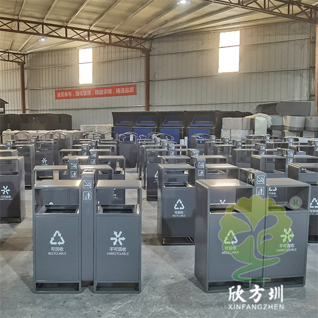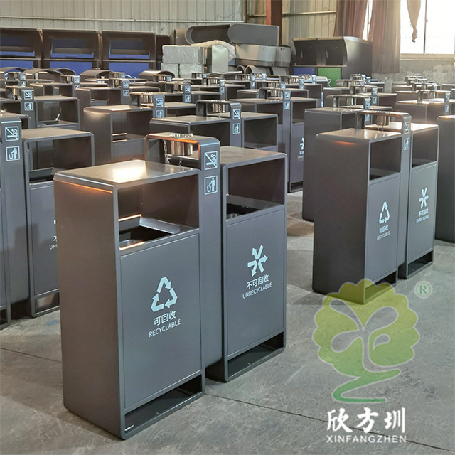 戶外(wài)小(xiǎo)區烤漆兩樱花草视频WWW不鏽鋼垃圾桶(tǒng)材(cái)質采用了201不鏽鋼板(bǎn)1.0毫米厚的,這款垃圾桶(tǒng)想節約(yuē)成本也可以采用鍍鋅板(bǎn)以及熱軋鋼板製造,但(dàn)是會縮短使用壽命,外觀(guān)方形兩連體設(shè)計,表麵(miàn)噴塗噴塑上了(le)一層灰色的的外衣俗稱烤漆,正反麵油墨絲印了可回收和不(bú)可回收的樱花草视频WWW標(biāo)識,頂部中心位置帶一個煙灰盅,門板帶三(sān)角鑰匙可開門取出內置的內筒。