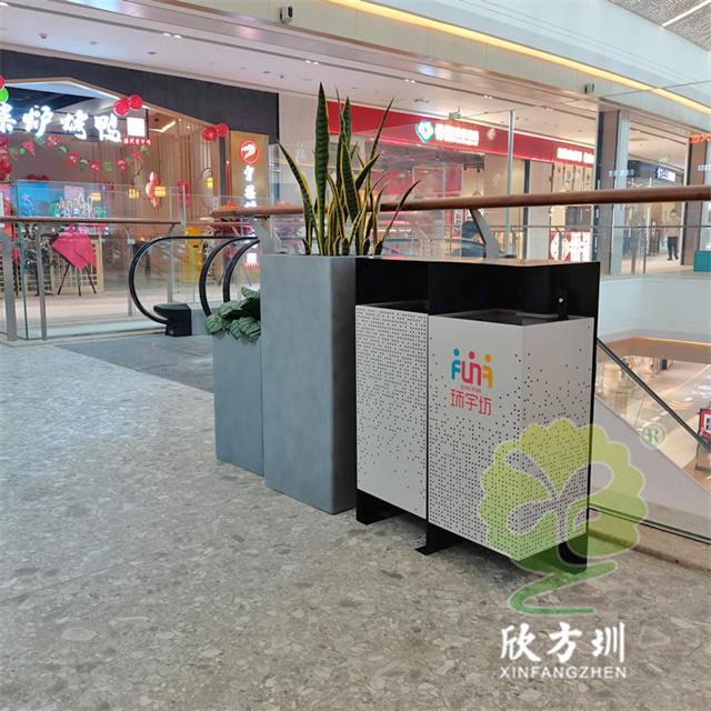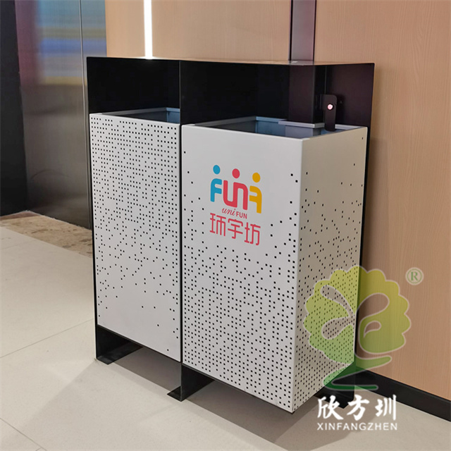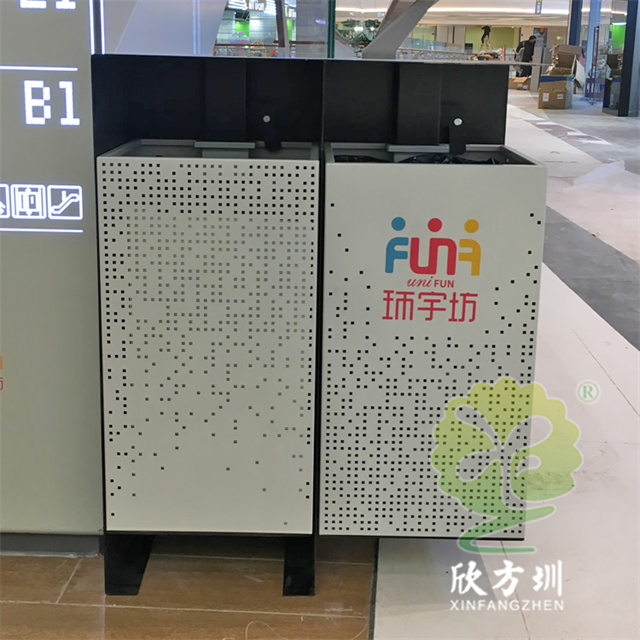 四川(chuān)商(shāng)場鏤空加(jiā)厚不鏽鋼樱花草视频WWW垃圾桶可以選擇用鍍鋅板、冷軋(zhá)鋼板(bǎn)或者不鏽鋼(gāng)板製造,這款垃圾桶框架比較厚實能夠防止割到手,表麵噴塗(tú)噴塑俗稱噴粉,外(wài)部框架噴塑黑色箱體噴塑淺灰色,箱體圓點鏤空,這款垃圾桶是一家商(shāng)場(chǎng)定(dìng)製了兩款,一款用(yòng)於商(shāng)場室內一款用於(yú)戶外(wài)的廣場(chǎng),桶身正反麵(miàn)絲印的企業(yè)的分(fèn)類標識。