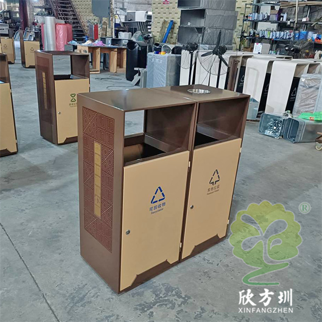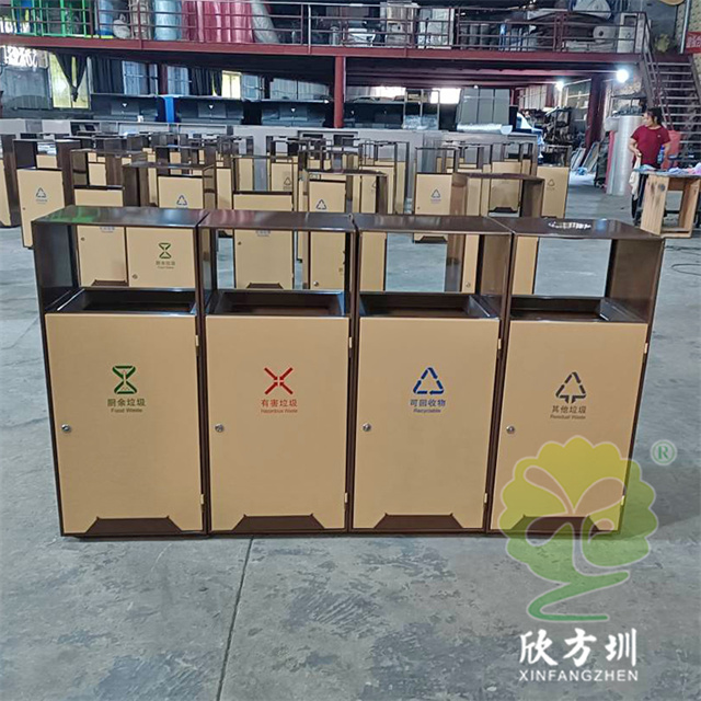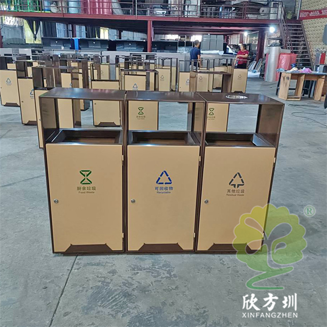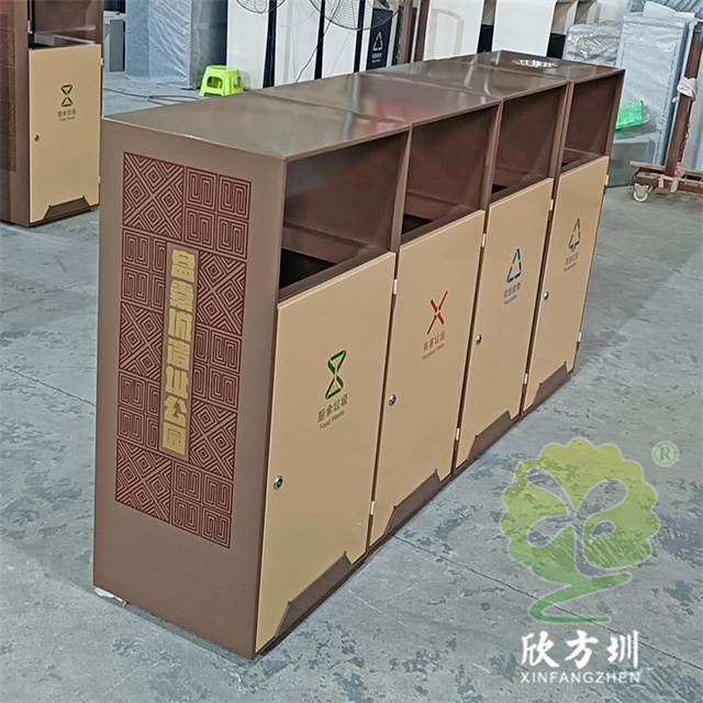 戶外公(gōng)園噴塑組合式樱花草视频WWW不鏽鋼垃圾桶整體201不鏽鋼1.0mm厚度,不刨槽折彎,框(kuàng)架邊框折彎15mm,單層,框架噴塑,色(sè)號潘通7596C,前後(hòu)門板也噴(pēn)塑,色號潘通466C,門板下麵裝4mm厚(hòu)度裝(zhuāng)飾條噴塑,顏色和框架。
