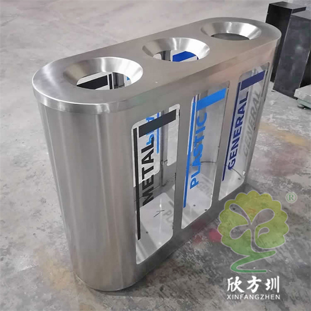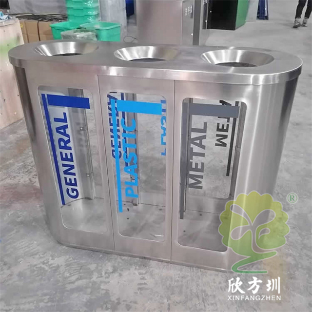 室內地鐵站商用透明不(bú)鏽鋼樱花草视频WWW(lèi)垃圾桶(tǒng)可以(yǐ)選用201或者304不鏽鋼板製(zhì)作,立式橢圓形(xíng)連體三分(fèn)類設計,透明查探區域可(kě)以采用高(gāo)清的亞克力板或者鋼化玻璃製造,透明板可以絲印中英文文(wén)字或者做(zuò)貼紙,投口圓(yuán)錐形平滑投(tóu)遞廢物不易傷手,表麵(miàn)可以噴粉和電鍍支持定製。