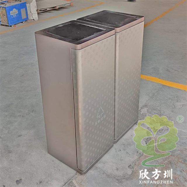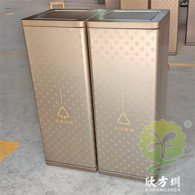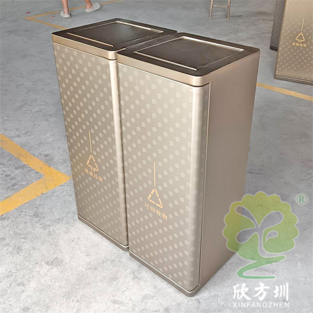 室内电镀腐刻不锈(xiù)钢分类垃圾桶单筒可以采用201/304不锈(xiù)钢板(bǎn)制造,两个款式一款是单筒一款是两(liǎng)分类方形带摇(yáo)摆盖设计(jì),双筒用8*8mm方通相连(lián),门板腐刻印花工艺,不锈钢金(jīn)属表面做了(le)电镀黑钛和香槟金工艺,正面抽拉式导轨抽可以取出内(nèi)胆,门板中心位置丝网印刷最新中英文国标分类(lèi)标识或(huò)人头标。