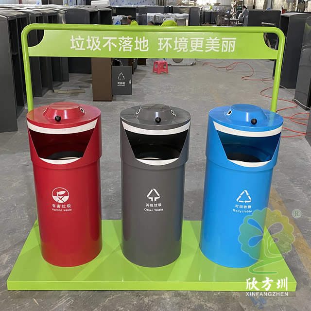 戶外圓(yuán)柱形三分(fèn)類鋼板垃圾桶是欣方圳設計生產的一款時尚藝術垃圾桶,這款垃圾桶工藝精湛、外形美觀、非常(cháng)受市場(chǎng)歡迎,被(bèi)許多采購客戶擺放於街道、物業小區、景(jǐng)區公園等。如果您有采購垃圾桶的(de)需求,請聯係我們報價,我們也接(jiē)受來圖定製(zhì),期待與您的合作。