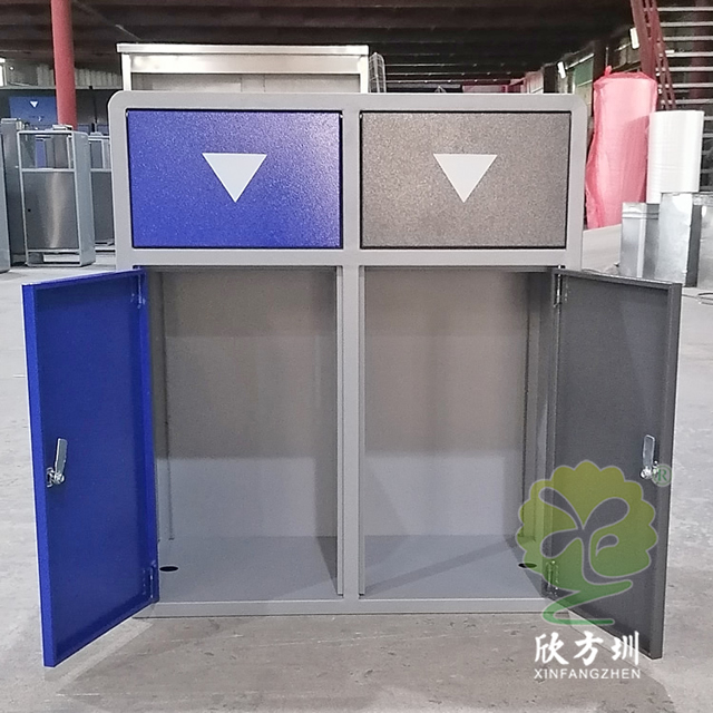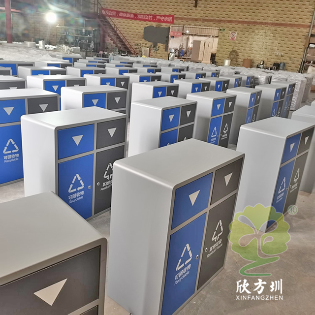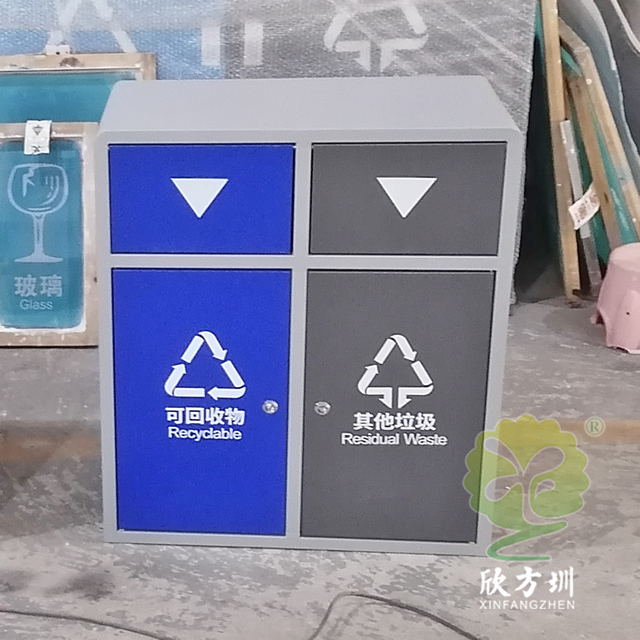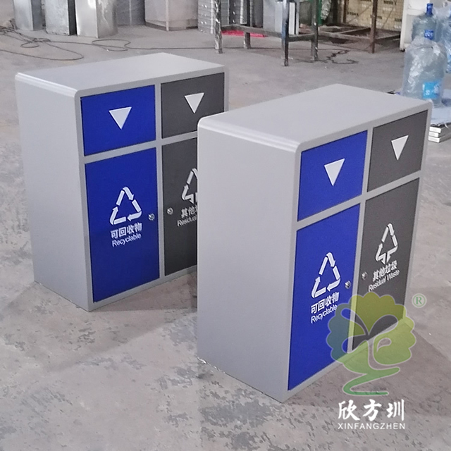 戶外搖蓋學校鋼板樱花草视频WWW垃圾桶是采用優質的冷軋鋼板製作而成,有條件的客戶可以挑選201/304不鏽鋼板做,方形搖(yáo)晃蓋兩樱花草视频WWW(lèi)連體規劃,表麵框架噴塑了米白色,可回收物門板和投口蓋子噴塑藍色,其他垃圾(jī)門板和搖晃蓋子噴塑了灰色(sè),表麵(miàn)絲印最新國標樱花草视频WWW標(biāo)識,標識下方絲印了英文的翻譯,蓋子下(xià)方(fāng)絲印三角形往下推(tuī)的箭頭,欣方圳垃圾桶廠家支持定(dìng)製,有需要可(kě)以聯絡咱們客服人員。